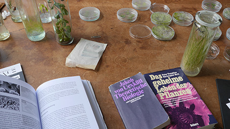 WorkshopIm Rahmen des Semesterthemas „Pflanzen in Bewegung“ erläuterte der promovierte Biologe und Künstler Klaus Fritze wissenschaftliche Verfahren, wie das Anlegen von Gewebekulturen von Pflanzen, die Erstellung von Nährlösungen, das Vitro-Verfahren und Genmanipulationstechniken für die Pflanzenzüchtung.