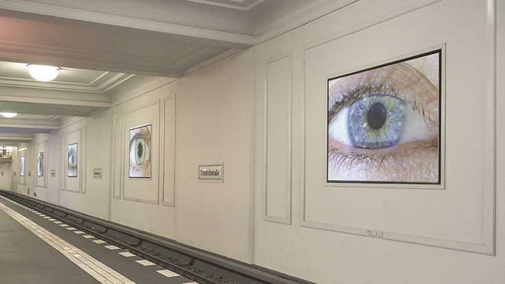 Offentliche PräsentationAm 19. April 2014 wurden die Ergebnisse von "Moving-Images-Underground" einem Kooperationsprojekt der UdK mit der Firma Wall AG der Öffentlichkeit vorgestellt. Zu sehen waren mehrkanalige Videoarbeiten von Studierenden der Fakultät Gestaltung auf den 12 Videoscreens entlang des Bahnsteigs der U6 im U-Bahnhof Friedrichstraße.